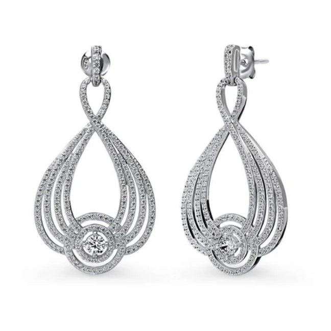 Woven CZ Statement Chandelier Earrings in Sterling Silver