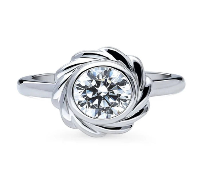 Woven Solitaire Bezel Set CZ Ring in Sterling Silver