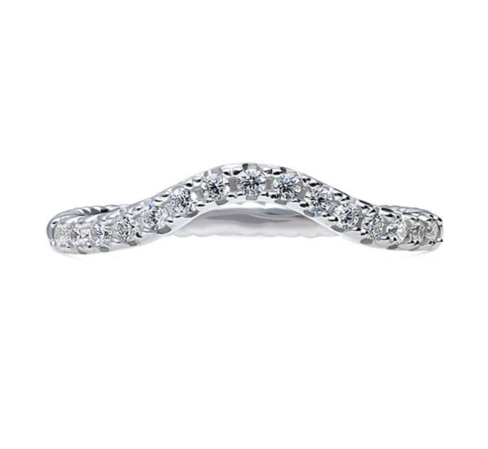 Woven Wishbone Pave Set CZ Curved Half Eternity Ring in Sterling Silver