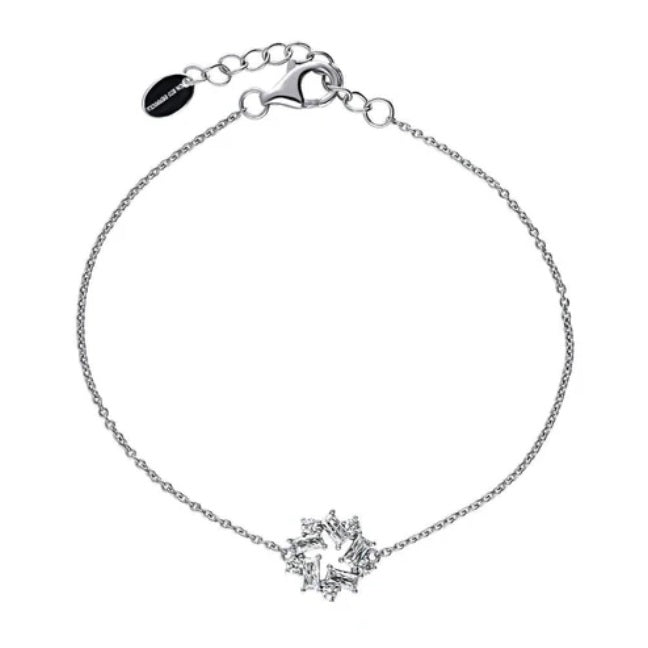 Illuminate your style with our Sterling Silver Wreath Bracelet, adorned with radiant and round-cut cubic zirconia stones, totaling 0.85 carats. Crafted with stamped 925 sterling silver and rhodium plating, this bracelet boasts a dainty 1mm width and a delicate centerpiece measuring 0.45 inches in length. With a secure lobster claw clasp and included gift box, it's the perfect accessory to add a touch of sparkle to your everyday look.