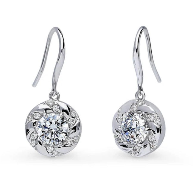 Elevate your ensemble with our Sterling Silver Wreath Woven Dangle Earrings, adorned with 2.8 carats of premium round cubic zirconia in a stunning pave and prong setting. Crafted with stamped 925 sterling silver, rhodium plating, and nickel-free materials, these earrings feature fish hooks for easy wear and come with a FREE gift box. Undoubtedly classic, the round cut stones exude timeless glamour and versatility, adding flair to any look.