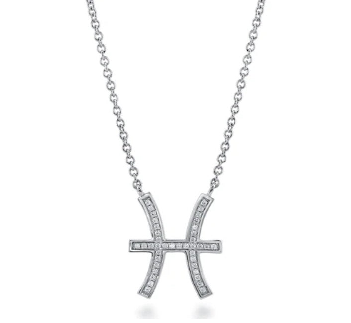 Zodiac Pisces CZ Pendant Necklace in Sterling Silver